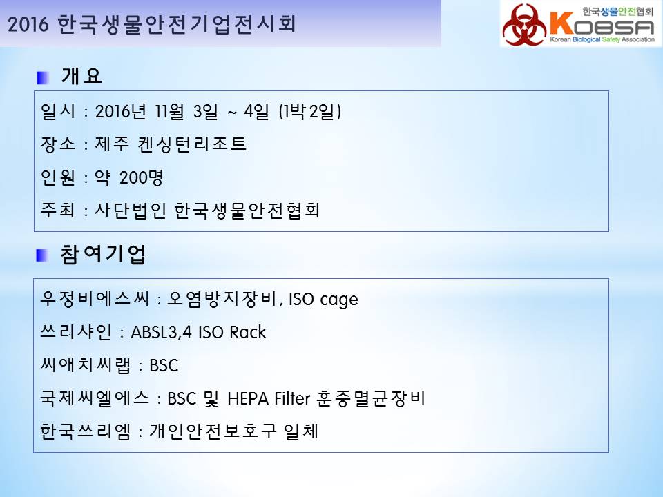 2016년 한국생물안전기업전시회 보고(11.3-4)