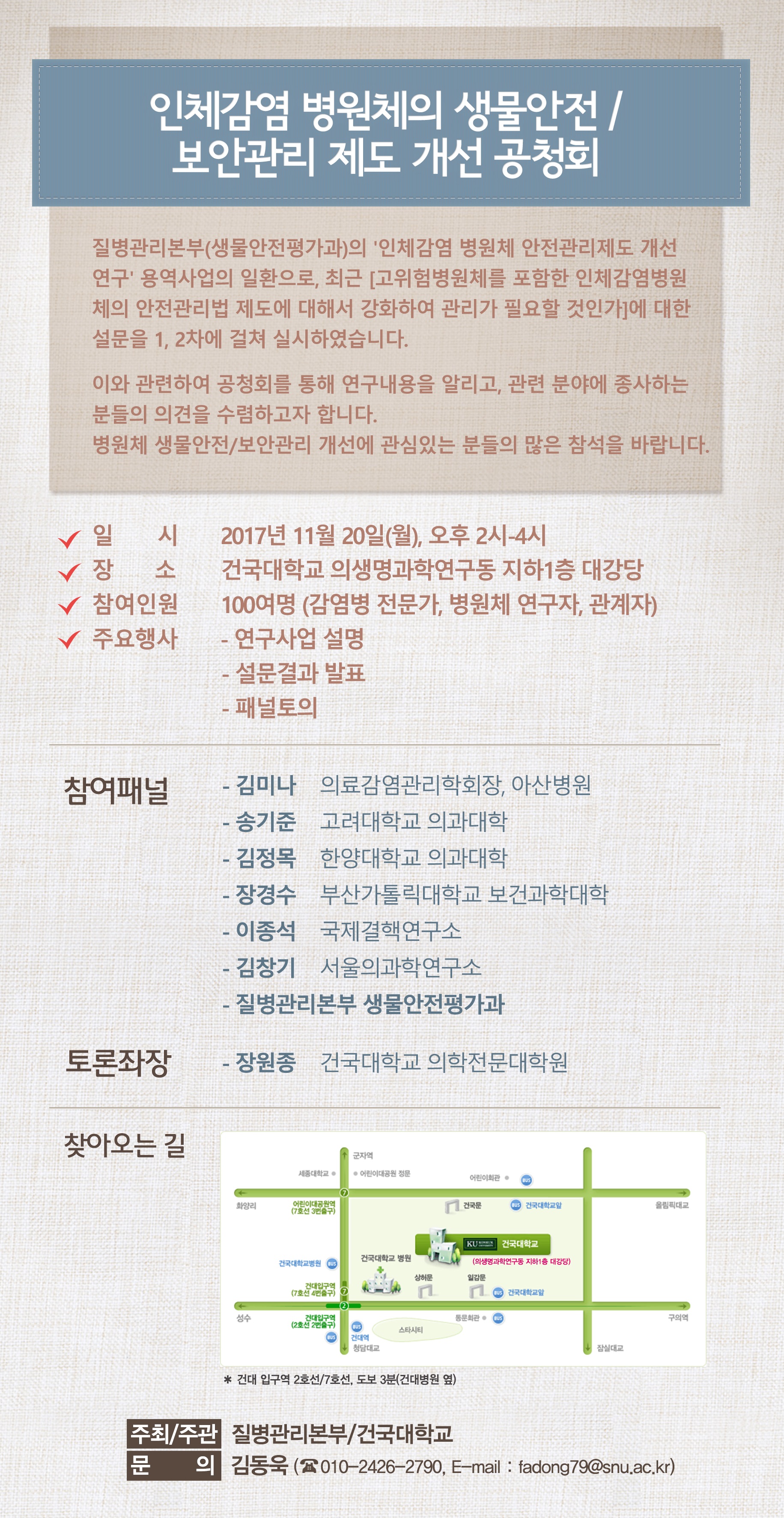 명칭 : 인체감염병원체의 생물안전 및 보완관리 제도 개선 공청회