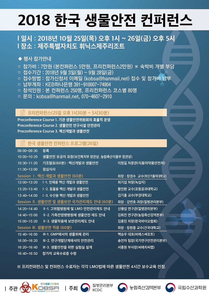 [공지] 2018 한국 생물안전 컨퍼런스 개최 안내(9.7수정)