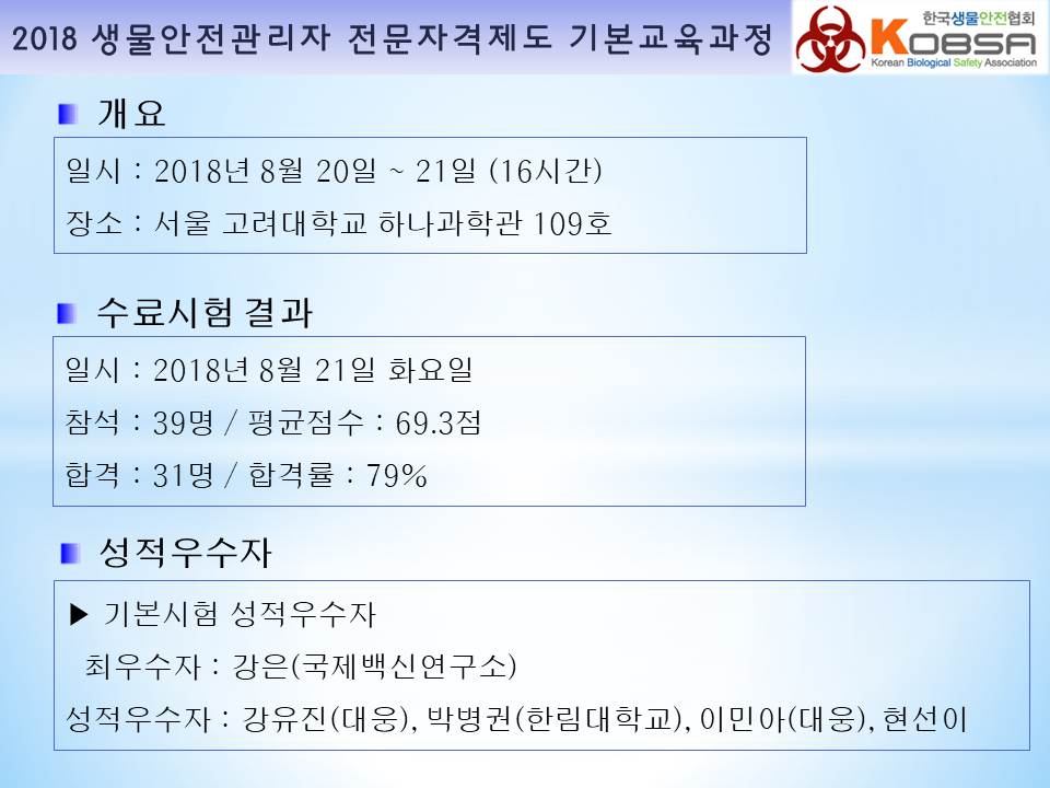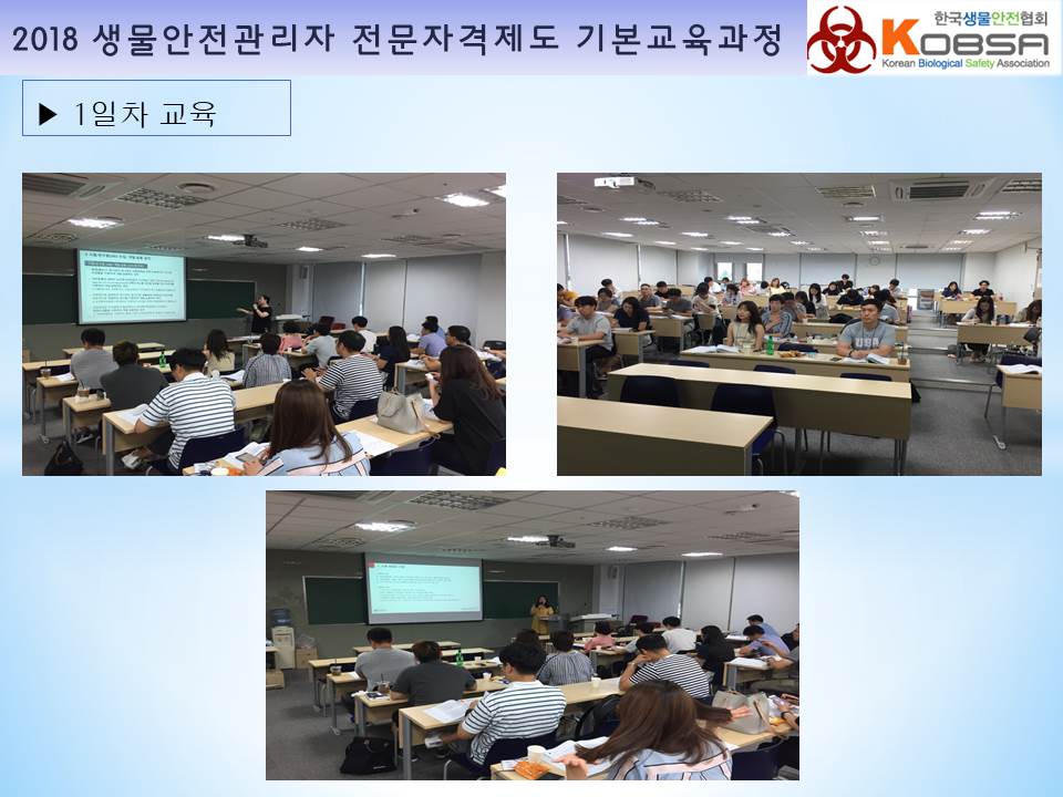 2018년 생물안전관리자 전문자격제도 기본교육과정 교육보고