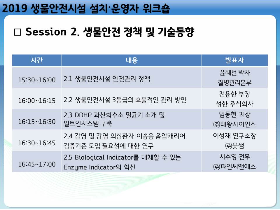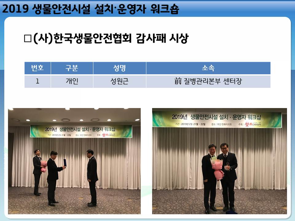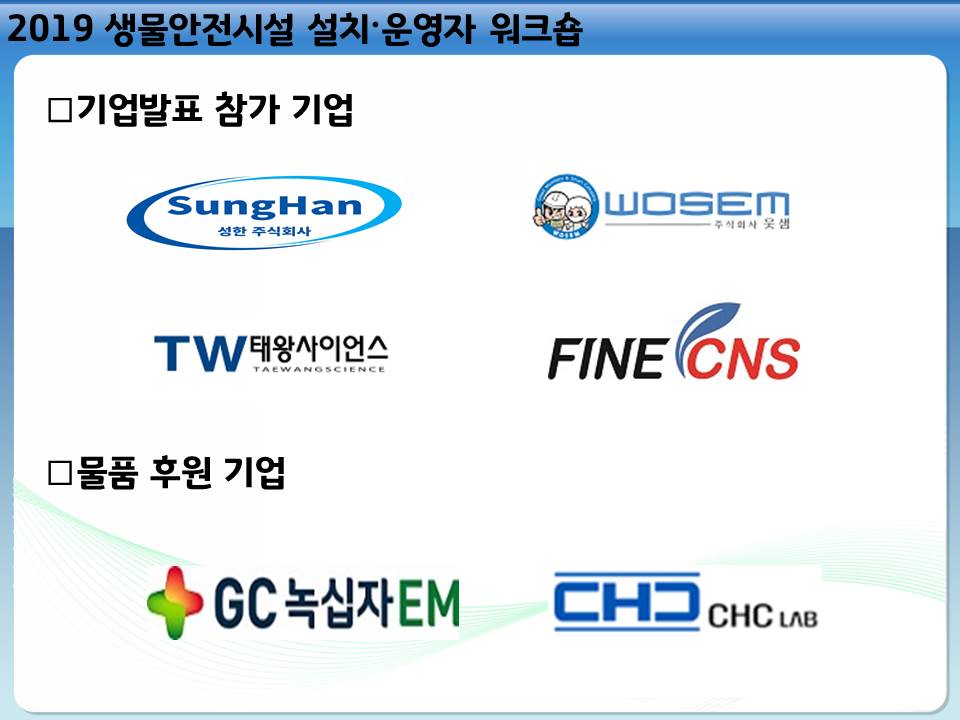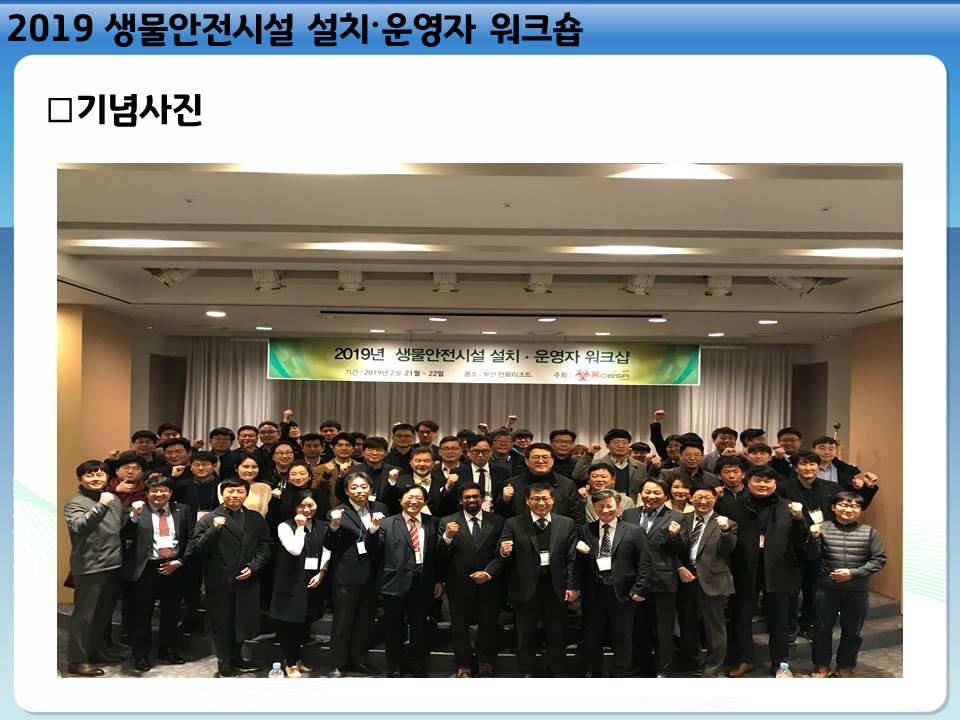 2019년 생물안전시설 설치, 운영자 워크숍 참가자 여러분께 감사의 말씀 드립니다.