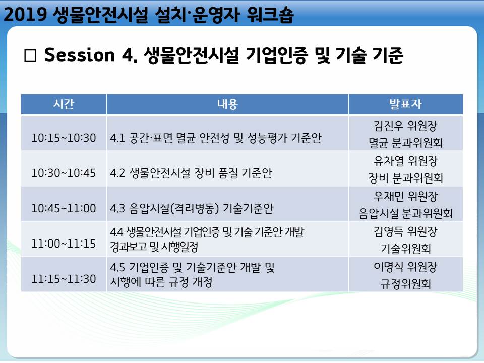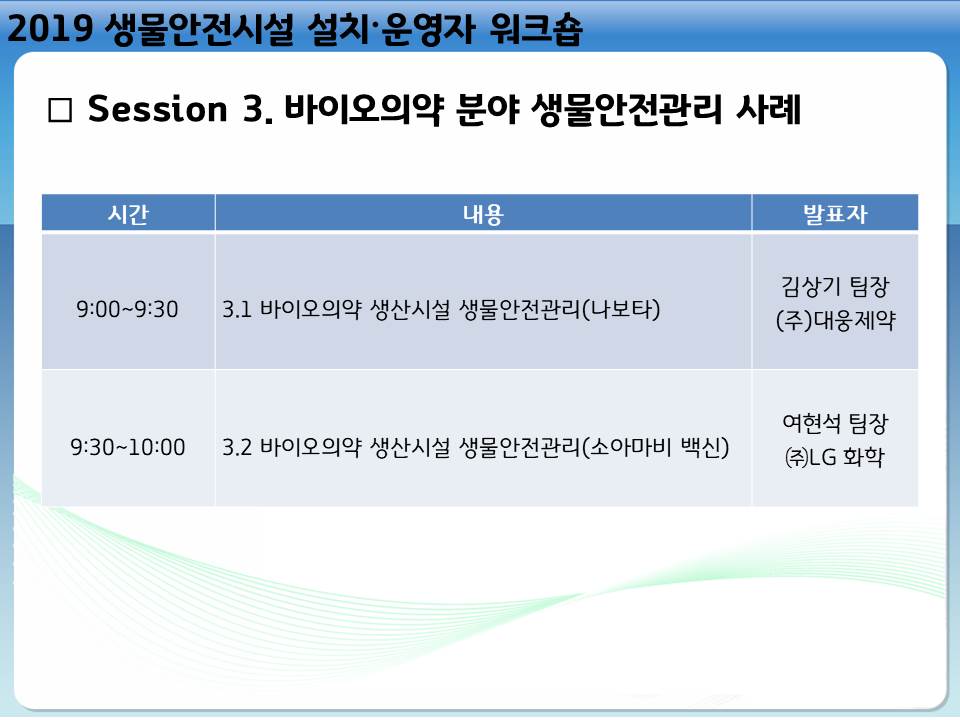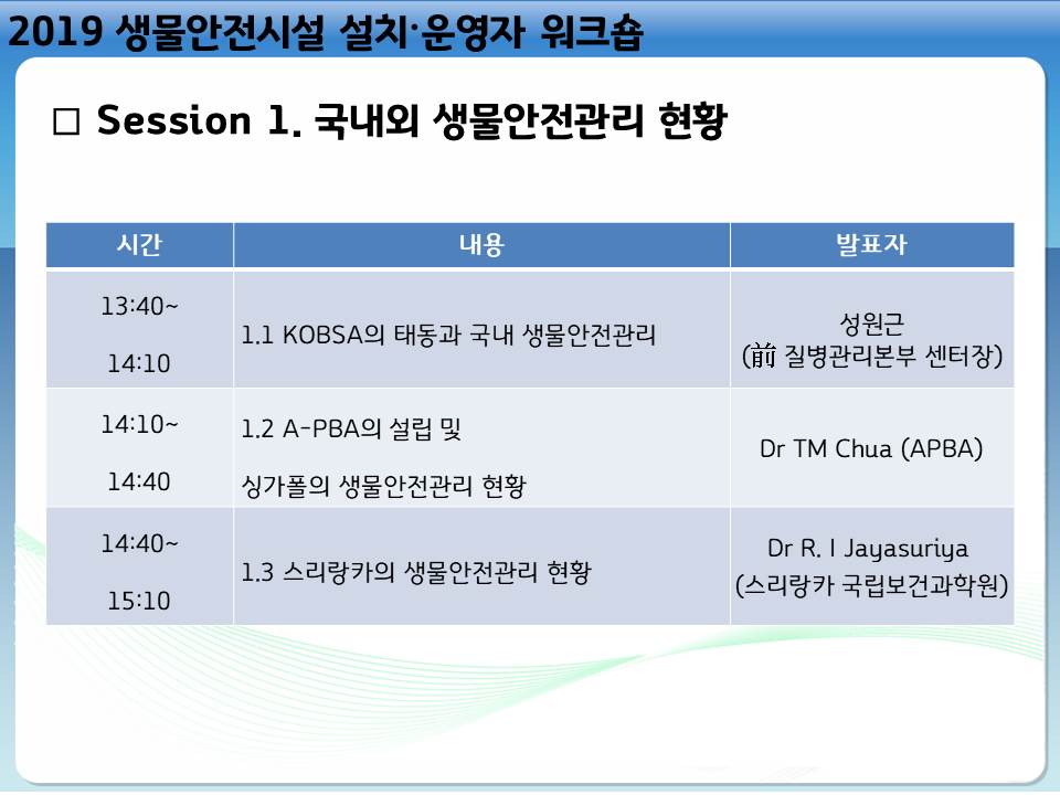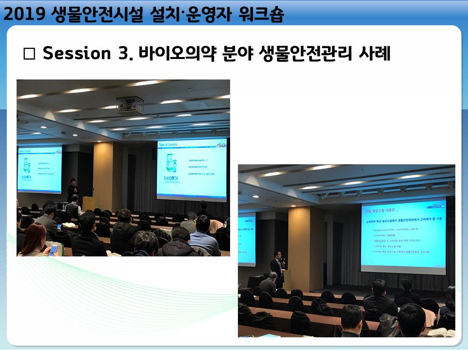 2019년 생물안전시설 설치, 운영자 워크숍 보고 및 강연자료 공유 안내